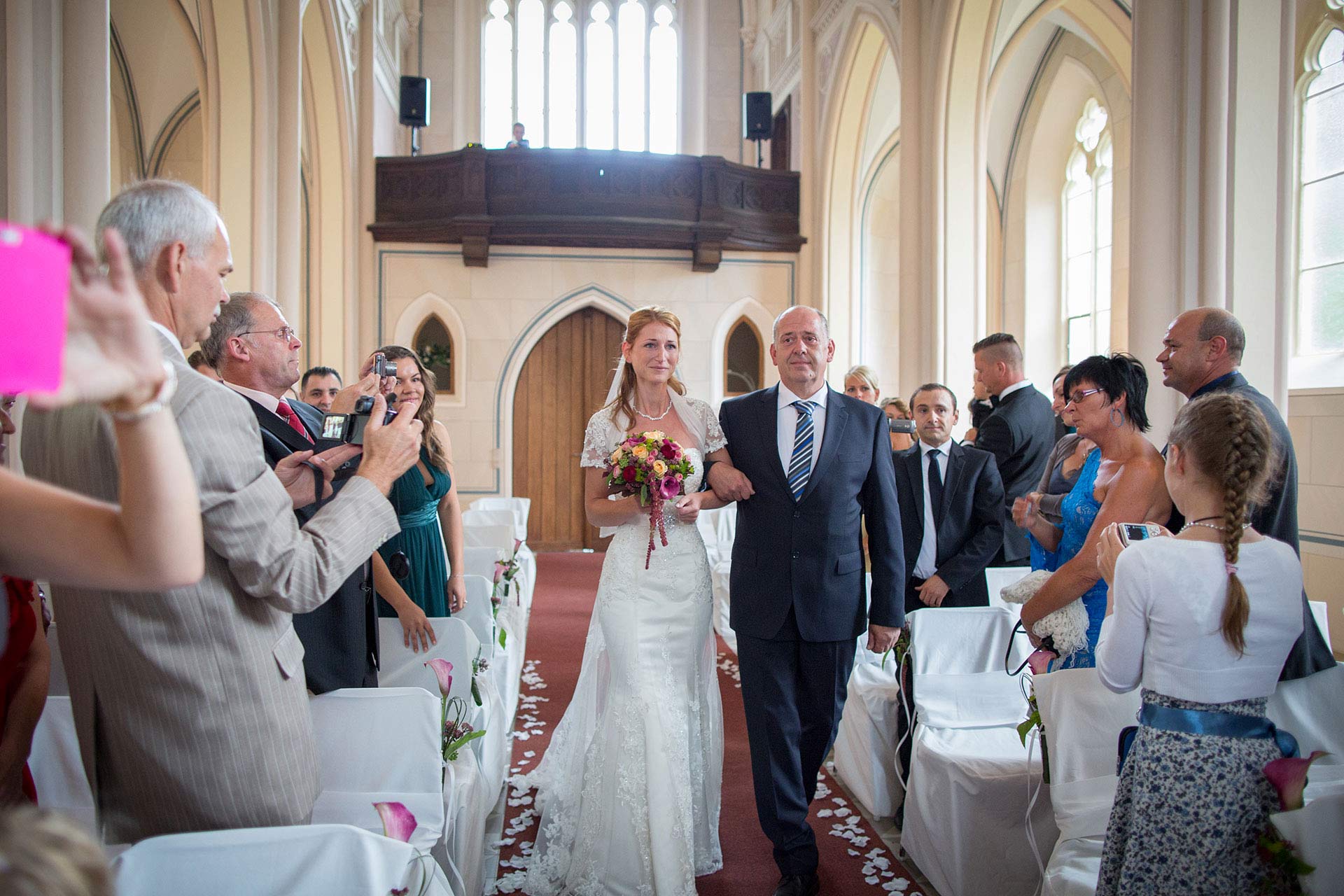 Sandy und René haben sich in der Eventkirche Kröchlendorff getraut. Anschließend gab es neben der Kirche einen Sektempfang und die Hochzeitstorte wurde angeschnitten. Später wurde ausgelassen im Schloss Kröchlerndorff gefeiert und zum Abschluss gab es ein wundervolles Feuerwerk.